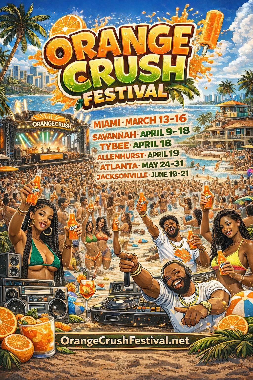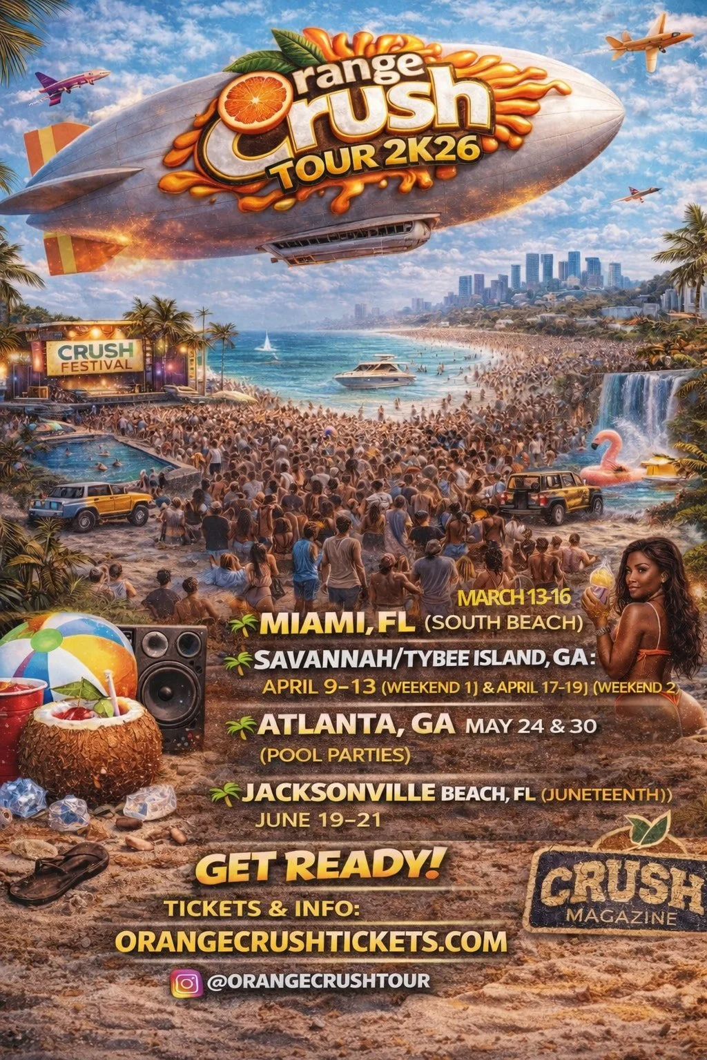 Orange Crush Tour 2026 is a multi-city festival experience combining beach days, pool parties, nightlife, car & bike culture, trail rides, music, creators, and curated social energy across the Southeast. It’s designed for people who don’t want to guess where the fun is — they want to follow it.