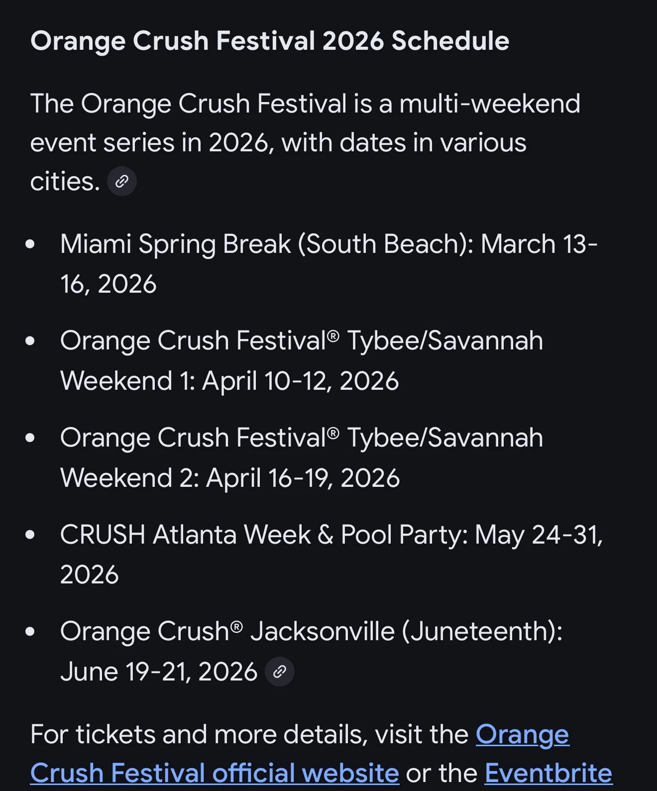 The official Orange Crush Festival experience — performances, Freaknik energy, beach culture, and the legendary Crush The Block® finale.